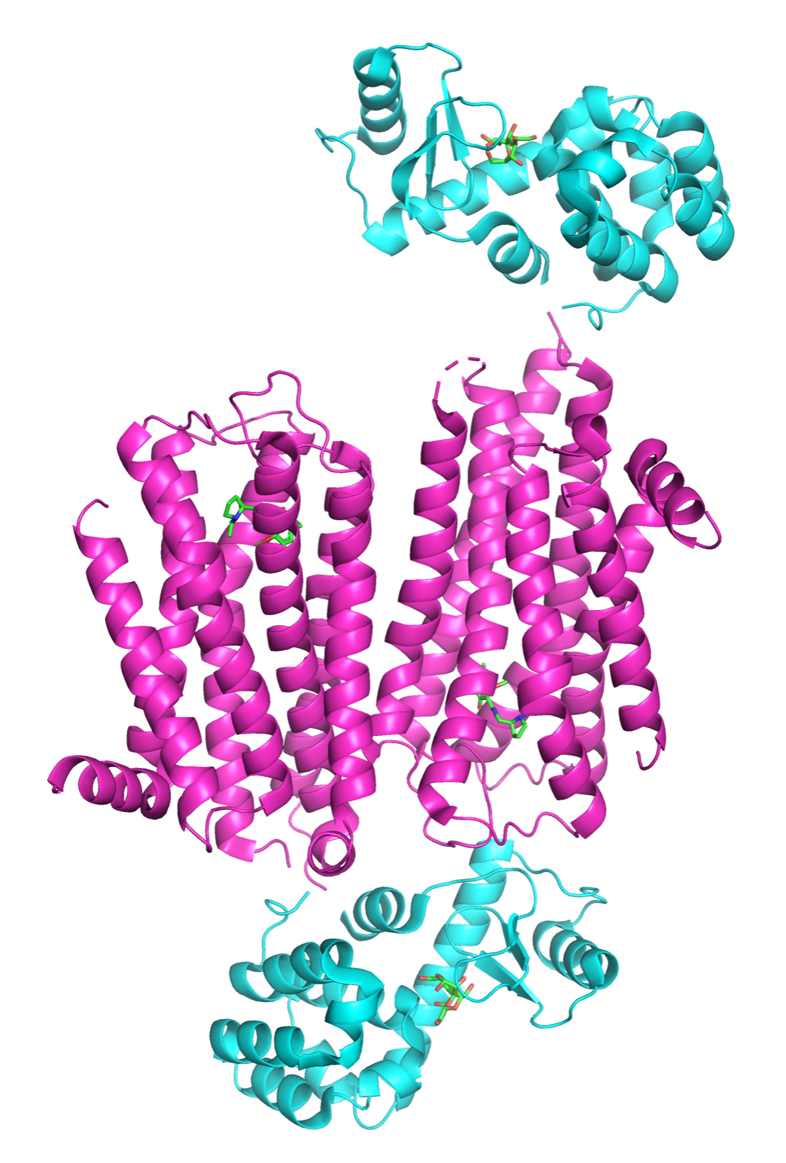 Figure 1: Crystal structure of DRD3-T4L fusion protein. DRD3 is in magenta and the T4L protein is in cyan.