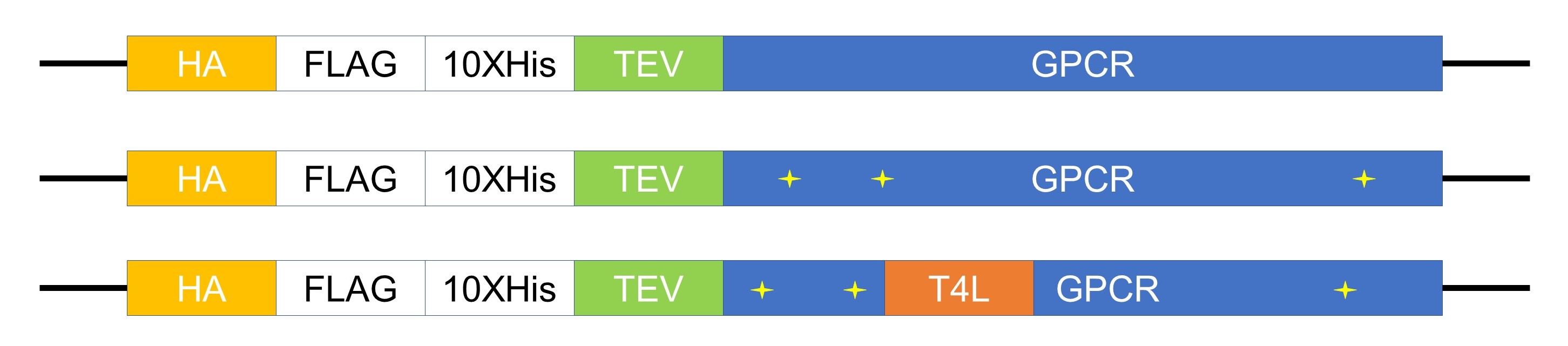 Figure 2: Example of rational GPCR construct design. Asterisk represents thermostability mutations.